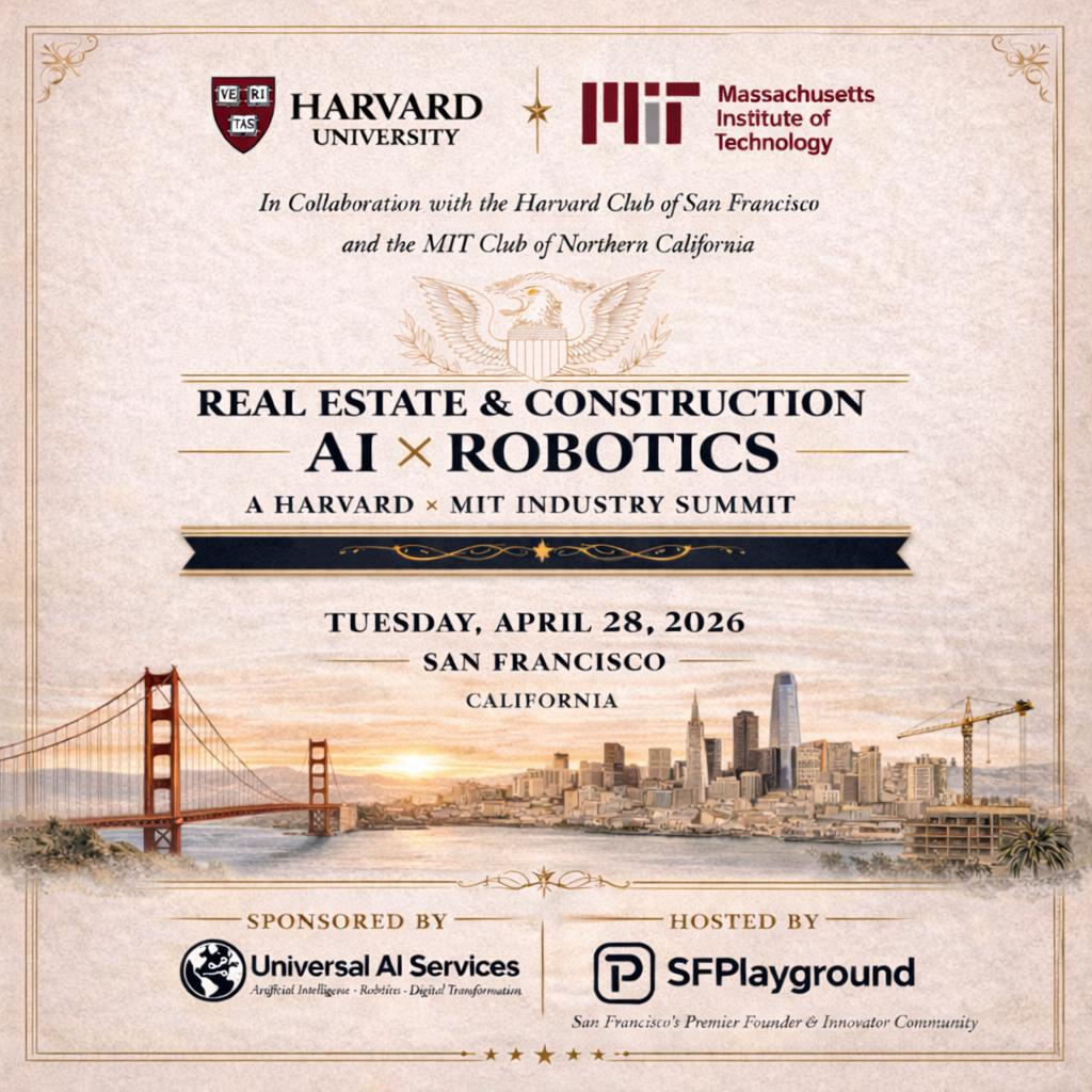 5:00PM - 9:00PM Tue 28 Apr 2026, Pacific timezoneThe final event in the series explores how AI and robotics are transforming Construction and Real Estate—from autonomous site inspections and robotic labor to AI-driven development, property intelligence, and infrastructure resilience. -